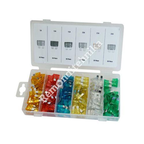 Kaitsmete komplekt 120 osa, Tavaline suurus20tk: 5A20tk: 8A20tk: 16A20tk: 20A20tk: 25A20tk: 30AKaal 0,3kg